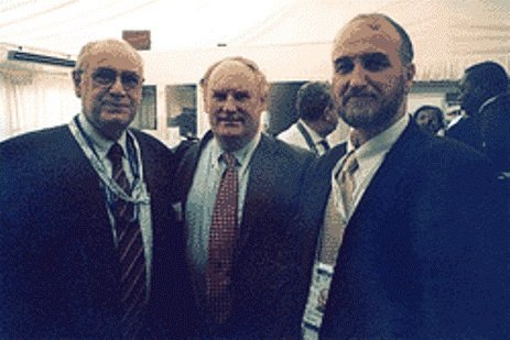 Prof. Dr Adel El-Beltagy and Dr S. Varma discuss ongoing ICARDA and CGIAR joint communication activities with Ms Fionna Douglas, Senior Information Officer, of the CGIAR Secretariat.